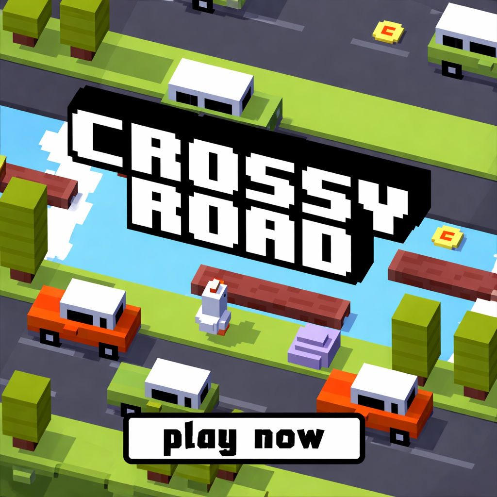 Crossy Road is a popular endless arcade game, inspired by the classic concept of navigating dangerous roads and obstacles. Players control a chicken character and try to go as far as possible on roads, rivers, and train tracks without crashing or falling.